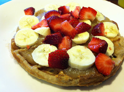 This is my favorite way to eat one with a little peanut butter, applesauce, bananas, and strawberries.